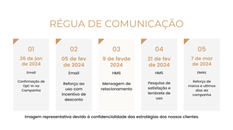 Desenvolvemos réguas de comunicação em sistemas CRM para um grande cliente do ramo bancário. Com esse projeto de comunicação integrada de marketing e CRM conseguimos um faturamento incremental 102% acima da meta estabelecida no início do projeto.